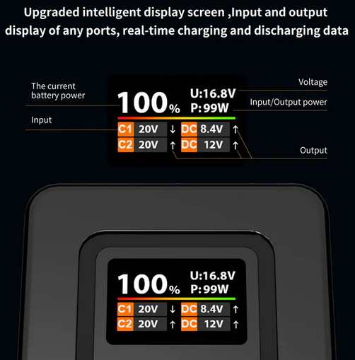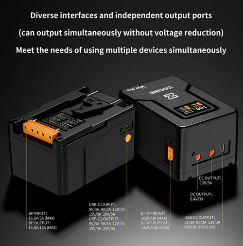 ZGCINE ZG-V99Pro V-Mount baterija dizajnirana je za profesionalce koji trebaju učinkovito i pouzdano napajanje za svoje uređaje. Ova nadograđena verzija V99 ima PD100W brzo punjenje , što omogućuje potpuno punjenje baterije u samo 1,5 sat s punjačem od 100W. Zaslon od 1,1 inča prikazuje kritične informacije kao što su napon, ukupna snaga i temperatura , pružajući praćenje baterije i uređaja u stvarnom vremenu.