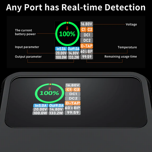 ZGCINE ZG-X160 V-Mount baterija revolucionira način na koji nadzirete i upravljate napajanjem svojih uređaja. S mogućnostima otkrivanja u stvarnom vremenu za bilo koji priključak—D-Tap, BP i više—ova inovativna baterija omogućuje vam jednostavno praćenje struje , napona , ukupne snage , preostalog vremena , temperature i drugih ključnih informacija na IPS zaslonu od 1,3 inča .