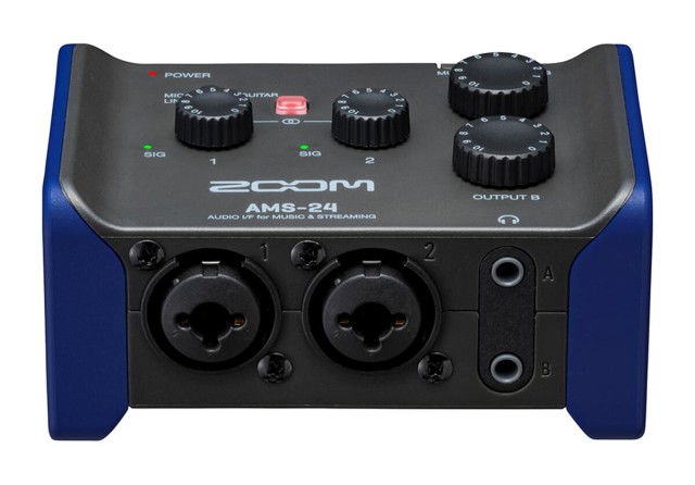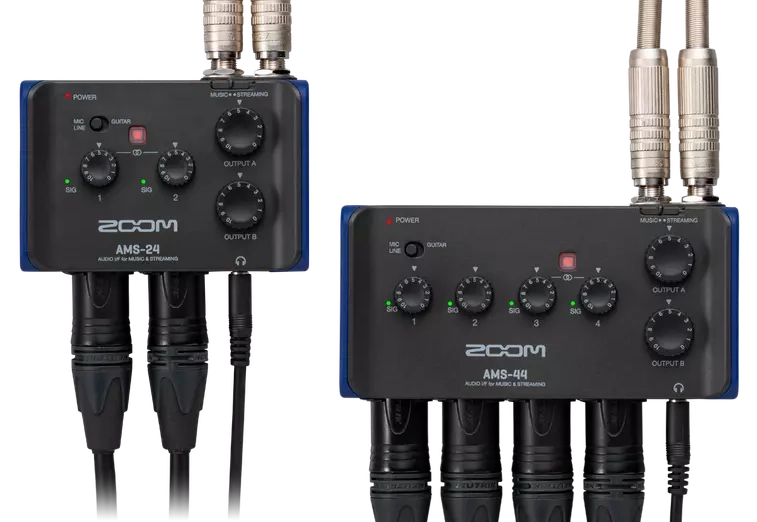 AMS-24 je savršeno rješenje za solo streamove i sesije s više instrumenata. Nudi dva kombinirana XLR/TRS ulaza s niskošumnim Zoom pretpojačalima. Tu su i dva izlaza za slušalice i dva TRS izlaza za spajanje vanjskih monitora.