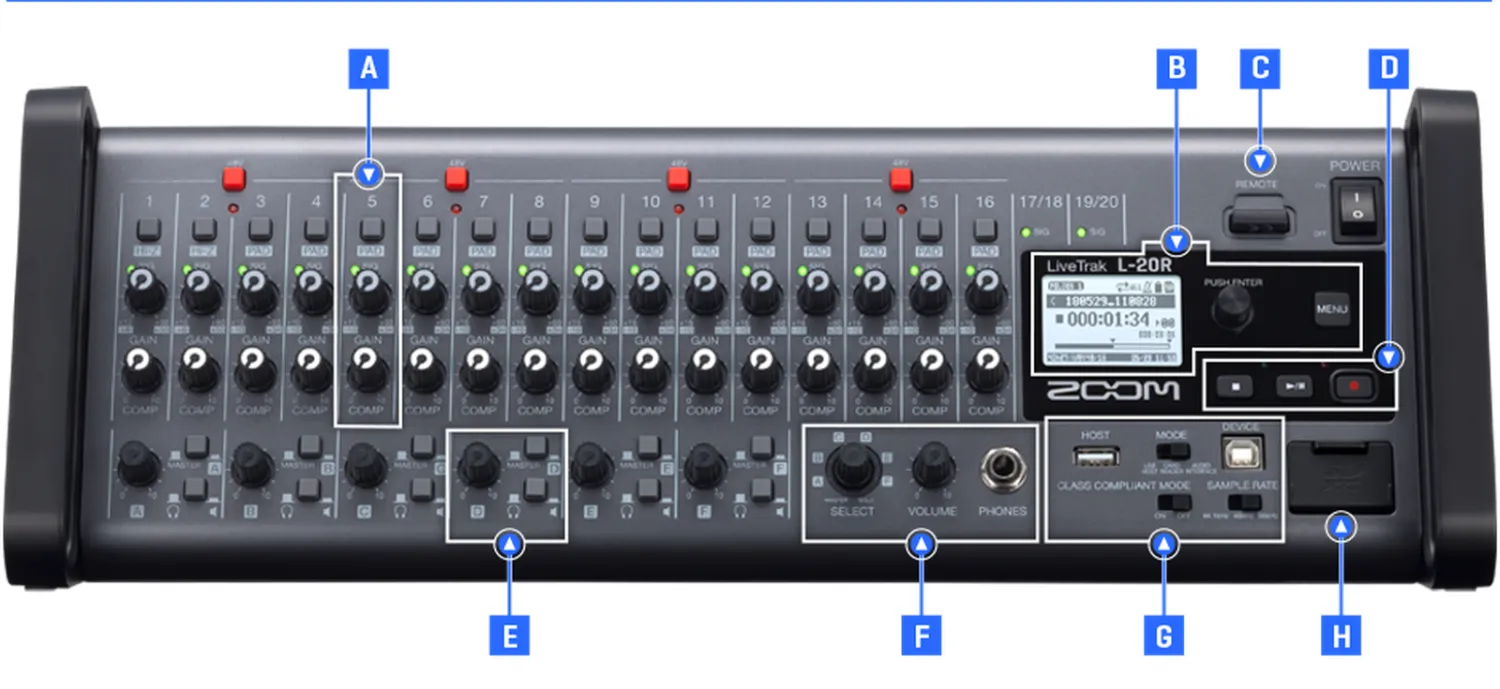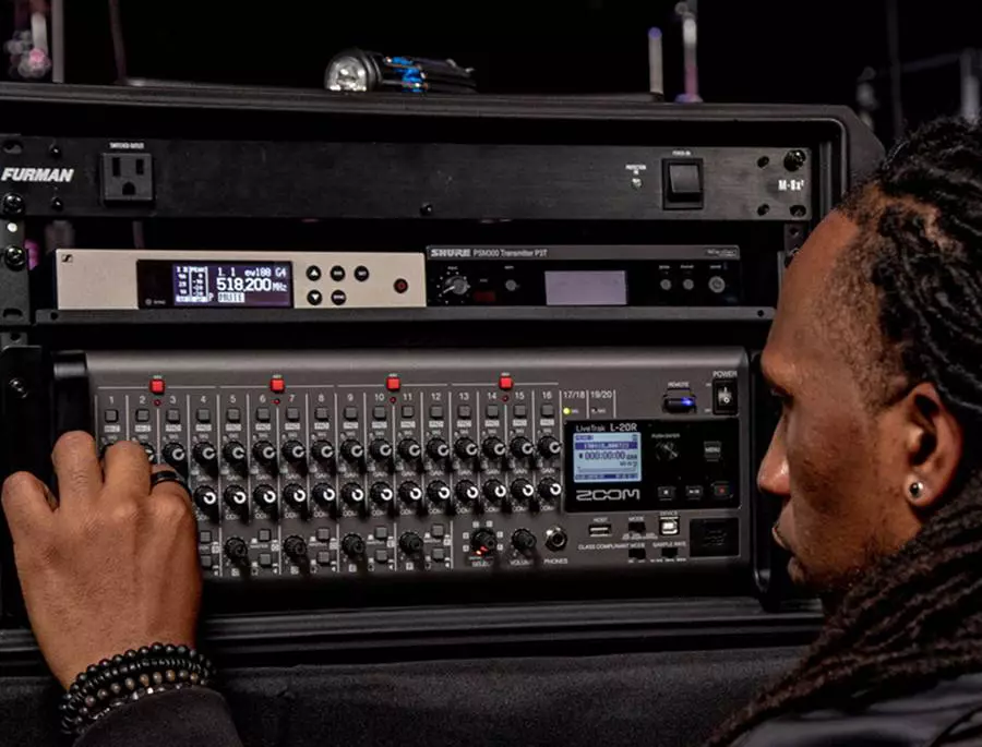 Zoom LiveTrak™ L-20R je digitalna miks konzola koja se može montirati na stalak i omogućuje glazbenicima da uređuju svoj miks uživo na pozornici. Uz bežičnu kontrolu, 20 diskretnih kanala, 22 zapisa za snimanje i šest pojedinačnih mikseva za praćenje, L-20R je potpuno rješenje za svaku situaciju.